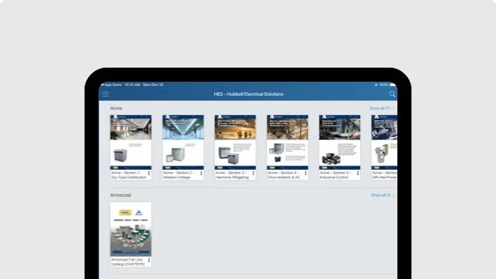 Accédez rapidement et facilement à des catalogues interactifs de Hubbell, cette appli est dotée de puissantes fonctionnalités de recherche et de partage.