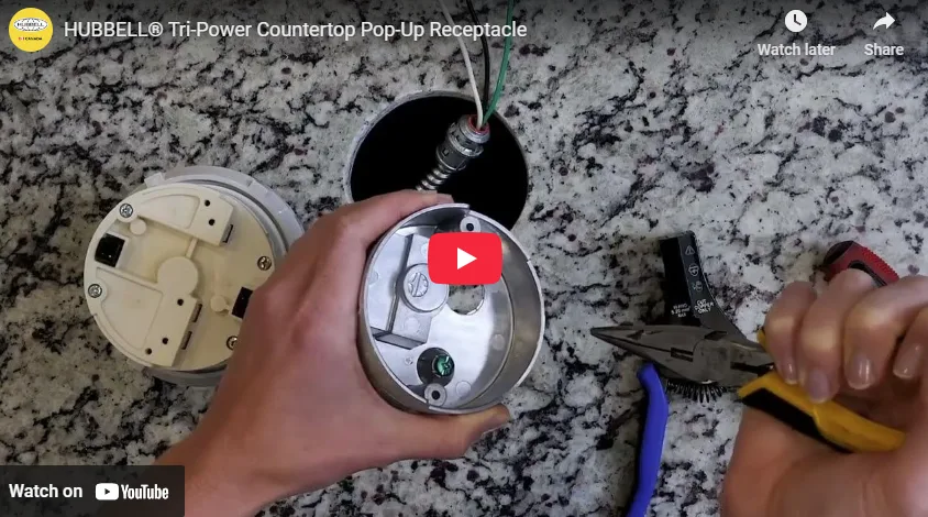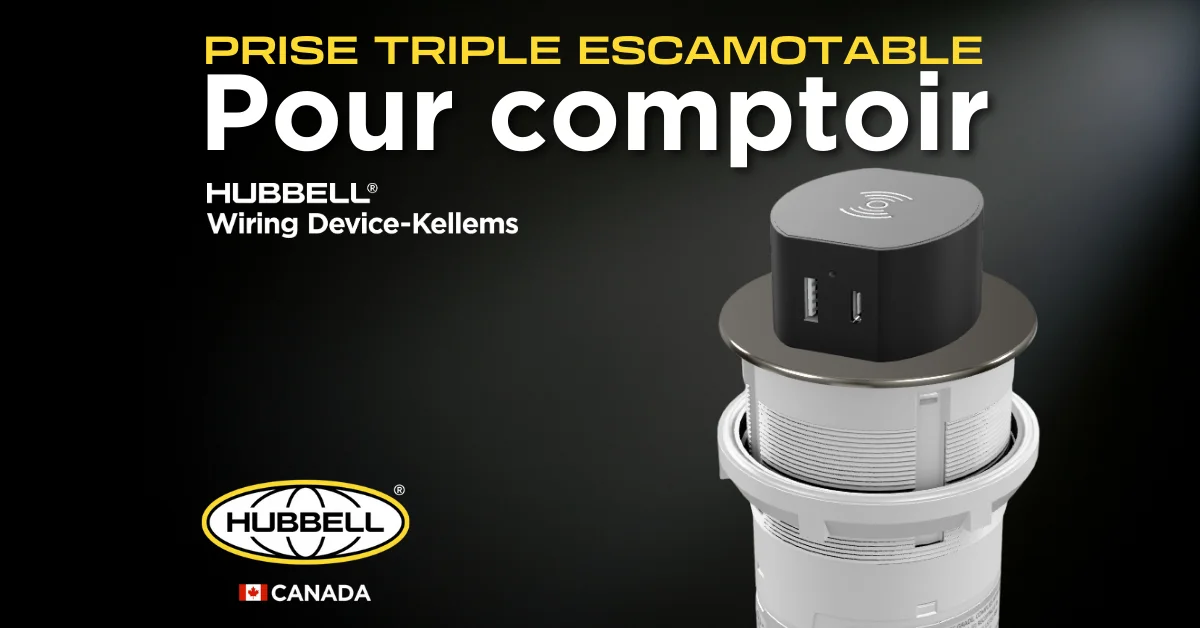 Hubbell est le premier sur le marché à proposer une prise de courant pour comptoir qui est homologuée cULus pour les applications sur comptoirs ou îlots et les installations permanentes. Les prises résistantes à l'eau sont testées jusqu'à un demi-gallon (1,9 L) de déversement et disposent des joints en silicone et de la technologie d'inviolabilité par action de came brevetés de Hubbell.