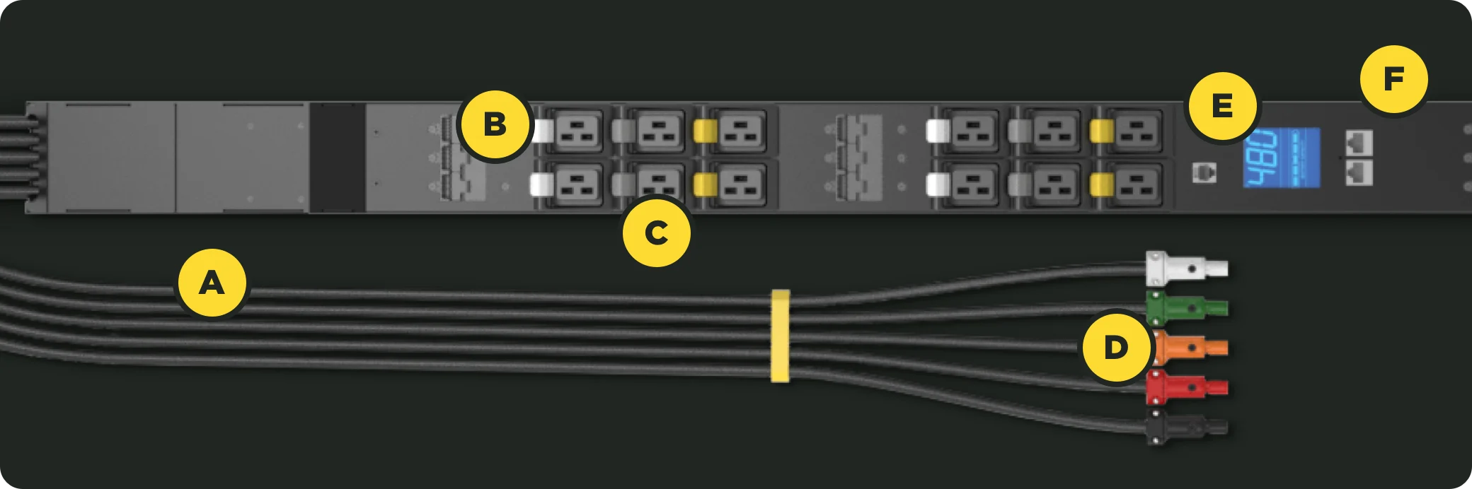 5-cable power cord is designed to allow for easy routing of the power whip and plug in and out of the data center cabinet.